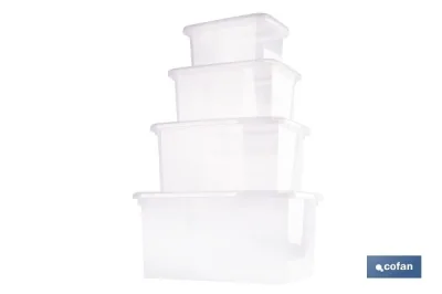 Organize a sua casa de forma prática, limpa e visual com este pacote de 4 caixas de arrumação transparentes, concebidas para cobrir todas as suas necessidades de arrumação em casa, no escritório ou na arrecadação. Fabricadas em polipropileno (PP) resistente, estas caixas são duradouras, leves e protetoras para manter os seus artigos sempre limpos e arrumados. O seu design transparente permite identificar o conteúdo à primeira vista, evitando a necessidade de abrir cada caixa. Todos estas caixas têm uma tampa rígida, garantindo uma proteção eficaz contra o pó, humidade e sujidade.