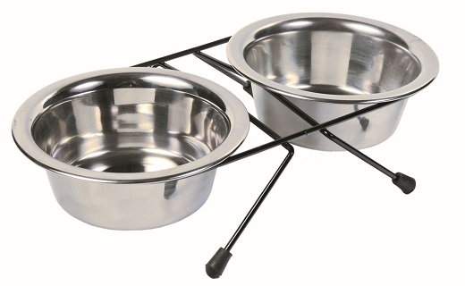 - 2 gamelas em inox com suporte em metal