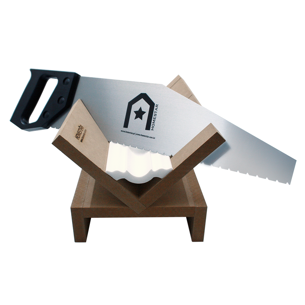 O conjunto serrote profissional e tábua de corte HOMESTAR® é um kit profissional, específico para corte de frisos, rodapés e sancas em poliestireno. Indicado para o auxiliar em cortes externos e internos a 45º, para um acabamento preciso e sem falhas. - Fácil manuseamento. - Material resistente e durável. - Ângulos perfeitos a 45º e a 90º. - Posição para corte de ângulos internos e externos.