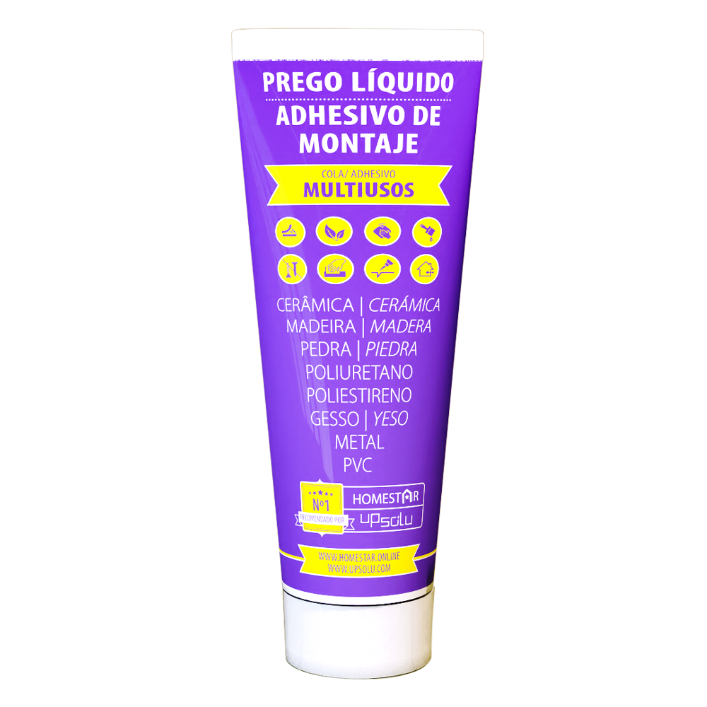 A cola Squeeze da HOMESTAR® é uma cola "prego" de fácil aplicação, graças ao seu formato bisnaga, não precisando de quaisquer acessórios extra para a sua aplicação... basta apertar e aplicar a quantidade de cola desejada! Sem solventes, de base aquosa e cor branca, indicada para colar poliestireno, poliuretano, cerâmica, madeira, cortiça, pedra, metal, gesso, pvc, etc. Com uma forte resistência inicial, substitui pregos ou parafusos, e os seus resíduos podem ser facilmente removidos com água, antes da secagem completa. Pintável depois de seca e sem cheiros activos, a cola da HOMESTAR® é a escolha perfeita para aplicação dos produtos HOMESTAR®. Peso: 300 g - Aplicação fácil e limpa. - Cola sem solventes. - Aplicação sem cheiros. - Pintável depois de seca. - Grande aderência. - Forte fixação inicial. - Aplicação interior e exterior.