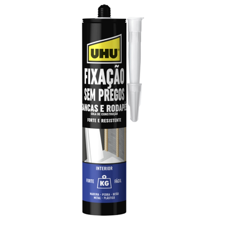 Adequada para a montagem de todos os tipos de materiais (de construção), como madeira, pedra, cimento, metal, vários sintéticos e espuma de poliestireno poroso em superfícies (porosas) de pedra, cimento, madeira, gesso, parede de gesso, etc. Também e muito adequada para colagem de superficie, melhorando a forca de colagem inicial. Muito adequada para a montagem de estruturas de madeira, rodapés, soleiras, ripas (madeira/plástico), paineis, peitoris, azulejos cerâmicos, placas de construção, paredes de gesso, ripas de madeira, folhas para revestimento de paredes, paineis, material de isolamento, cartão macio e duro, paineis, parapeitos, placas de identificação, números de casas, ganchos de suspensão, condutas, tomadas elétricas e caixas elétricas. Também adequada para materiais de decoração, como ornamentos e molduras em gesso, poliuretano e espuma de poliestireno.