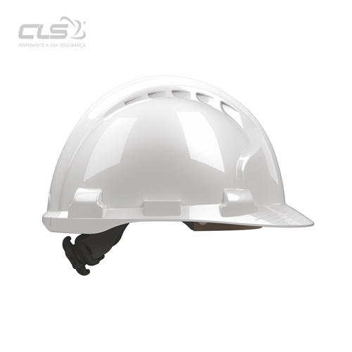 Capacete de proteção, ventilado, ajuste com roquete, 4 pontos de fixação, e banda de suor. Capacete inovador certificado de acordo com a norma EN14052, garante uma proteção à força de impacto directo três vezes superior à da norma EN397. Garante proteção lateral ao mesmo nível da protecção do topo.