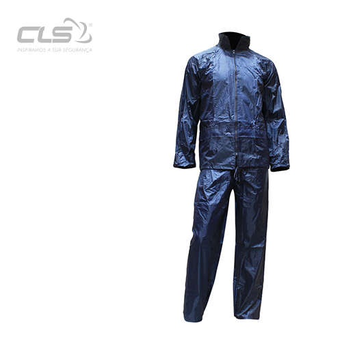 Fato em Nylon impermeável (conjunto casaco e calça), Casaco com Capux fixo, Fecho por Zip, 2 bolsos e Calça com cintura elástica