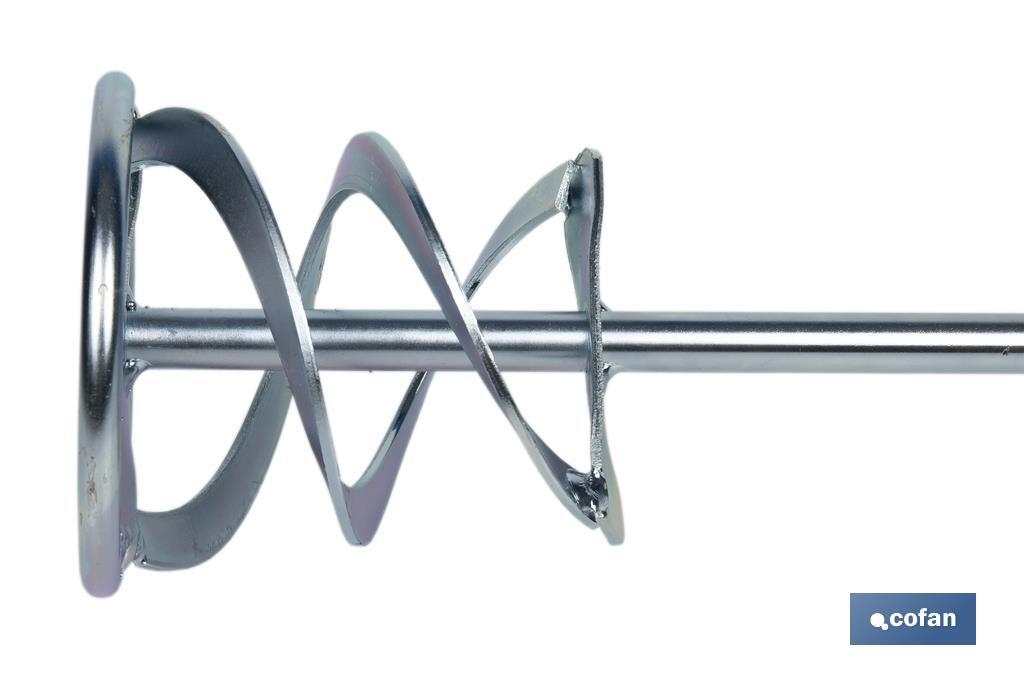 Vareta de mistura concebida para ser utilizada com a maioria dos berbequins de mistura disponíveis no mercado. Esta ferramenta é perfeita para misturar rapidamente substâncias de agitação semi-líquidas, tais como tinta, verniz ou composto de nivelamento, esmalte ou betume. Fabricada em aço galvanizado altamente durável, a vareta de agitação tem uma barra de agitação reforçada por soldaduras, tornando-a um acessório ainda mais forte e estável. Além disso, possui uma espiral dupla que torna a mistura ainda mais eficaz do que antes. A pá misturadora inclui um anel que torna todo o processo mais uniforme e seguro para o utilizador