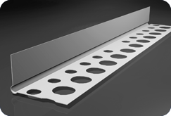 Perfil de Canto em Alumínio, com perfuração para optimização da aderência de massas. Além da sua aplicação no Sistema ETICS, pode igualmente ser utilizado como reforço e protecção para o rebordo das placas de Gesso Cartonado.