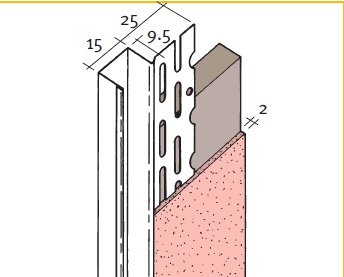 Perfil com moldura para criar um fosso de sombra puro em gesso bordas. Adequado para espessuras de placas de 9,5 mm, 12,5 mm e 15 mm. Disponível em comprimentos de 3mt
