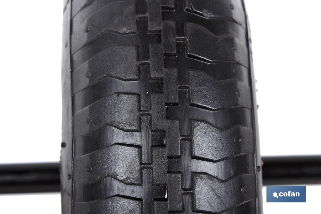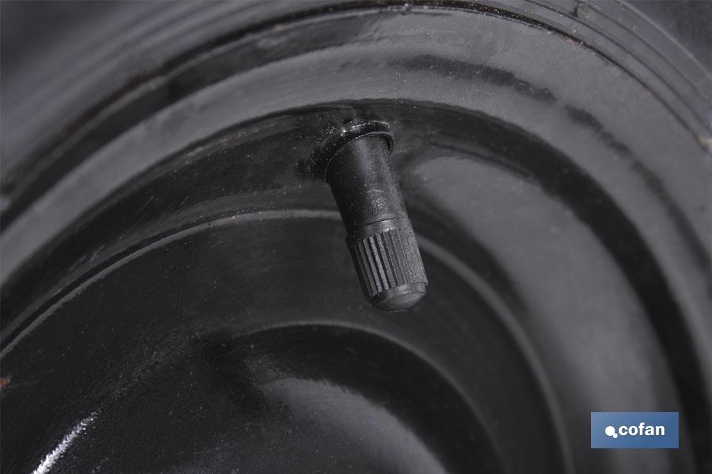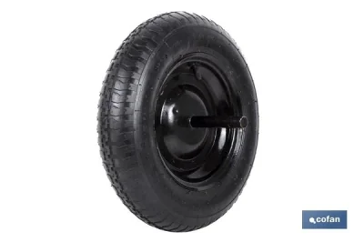 Roda "pneumática" para carrinho de mão de estaleiro com hastes Ø 20 mr. Roda pneumática para carrinho de mão de estaleiro e jardim com jante metálica ideal para uso profissional e doméstico.